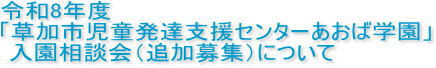 入園相談会は、令和8年度(2026年度)に草加市児童発達支援センターあおば学園への入園を希望する児童及び保護者と面談をして、心身の状態や日常生活の様子を伺うために実施するものです。