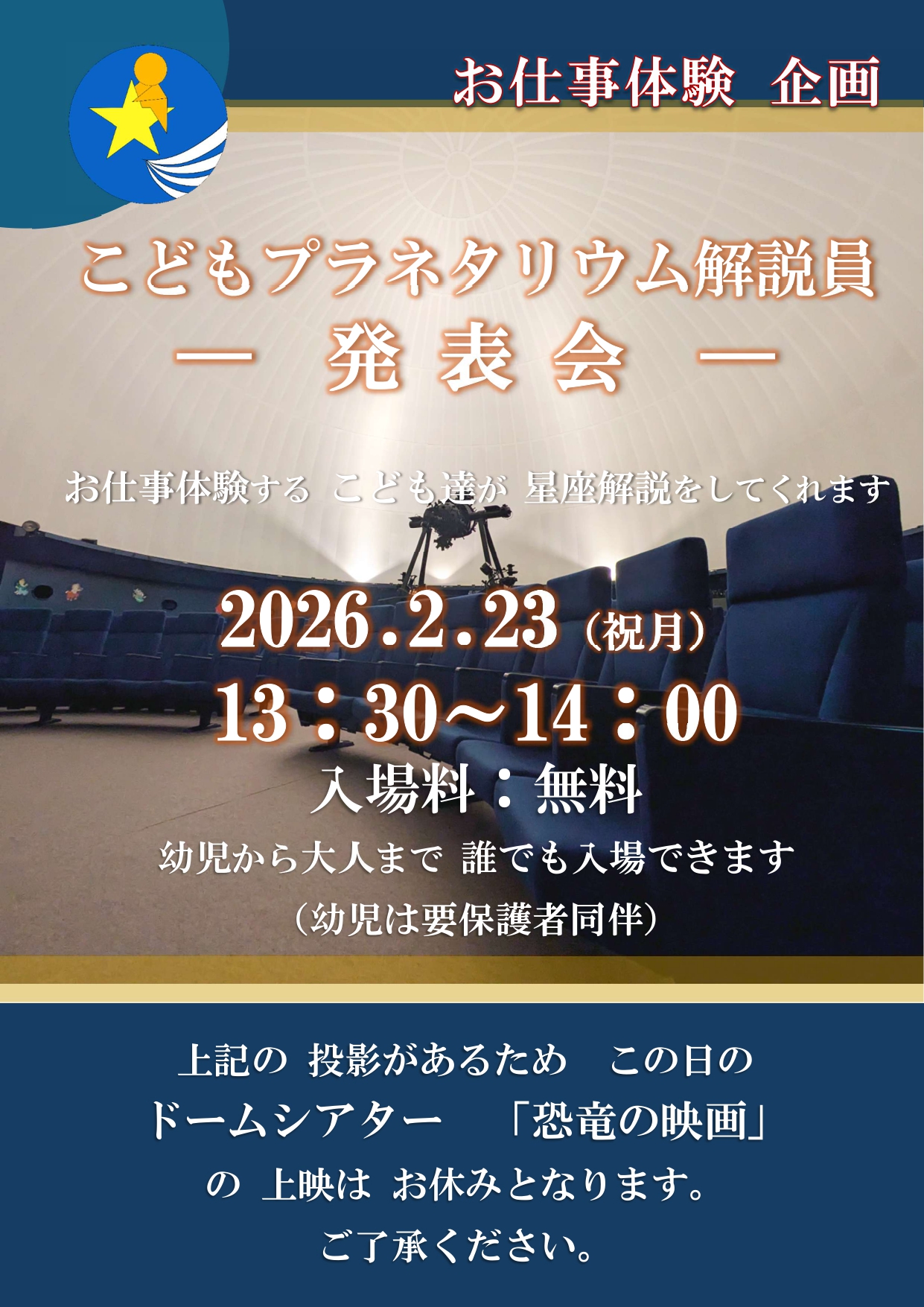 | 13:30~ | ドームシアター「恐竜の映画」 | |